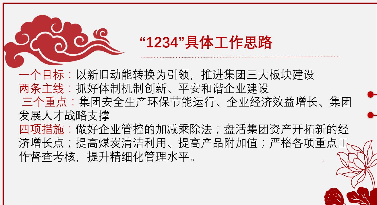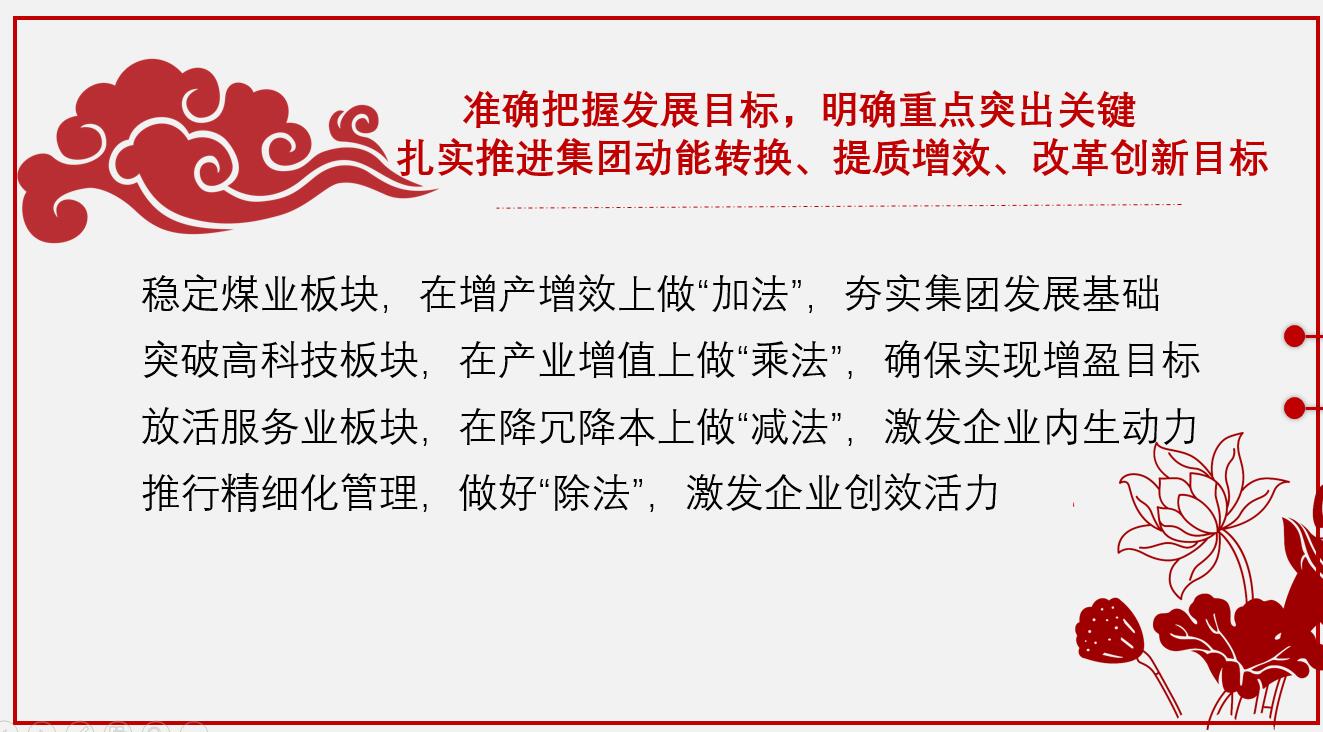 張文強(qiáng)調(diào),走進(jìn)新時(shí)代,面對(duì)新機(jī)遇,需要我們實(shí)現(xiàn)新作為。讓我們?cè)谑形姓图瘓F(tuán)黨政的正確領(lǐng)導(dǎo)下,圍繞集團(tuán)三大板塊發(fā)展戰(zhàn)略,穩(wěn)定煤業(yè)、突破高科技產(chǎn)業(yè)、放活現(xiàn)代服務(wù)業(yè),改革創(chuàng)新、銳意進(jìn)取,為打造管理規(guī)范、運(yùn)營(yíng)高效、充滿生機(jī)和活力的現(xiàn)代化控股集團(tuán)而努力奮斗!