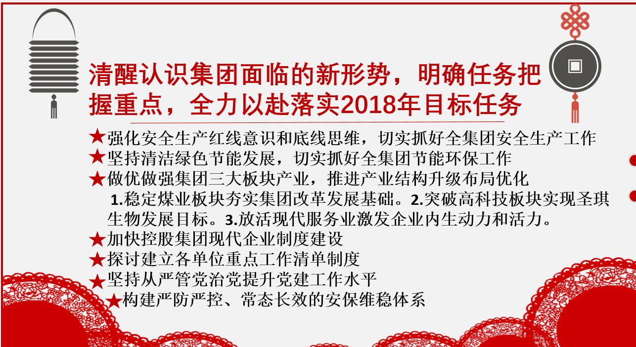 2018年是集團(tuán)公司保生存、求發(fā)展、爬坡過(guò)坎關(guān)鍵的一年。切實(shí)抓好年前年后的各項(xiàng)工作。傳統(tǒng)佳節(jié)春節(jié)即將來(lái)臨,各公司、各部室要妥善安排好節(jié)前放假、節(jié)后復(fù)工工作,安全部要落實(shí)上級(jí)要求,督導(dǎo)好各企業(yè)落實(shí)節(jié)日期間領(lǐng)導(dǎo)值守和安全監(jiān)管;治安處加大節(jié)日期間監(jiān)督檢查的力度,確保節(jié)日期間的安全、治安穩(wěn)定和各項(xiàng)工作的有序開(kāi)展。